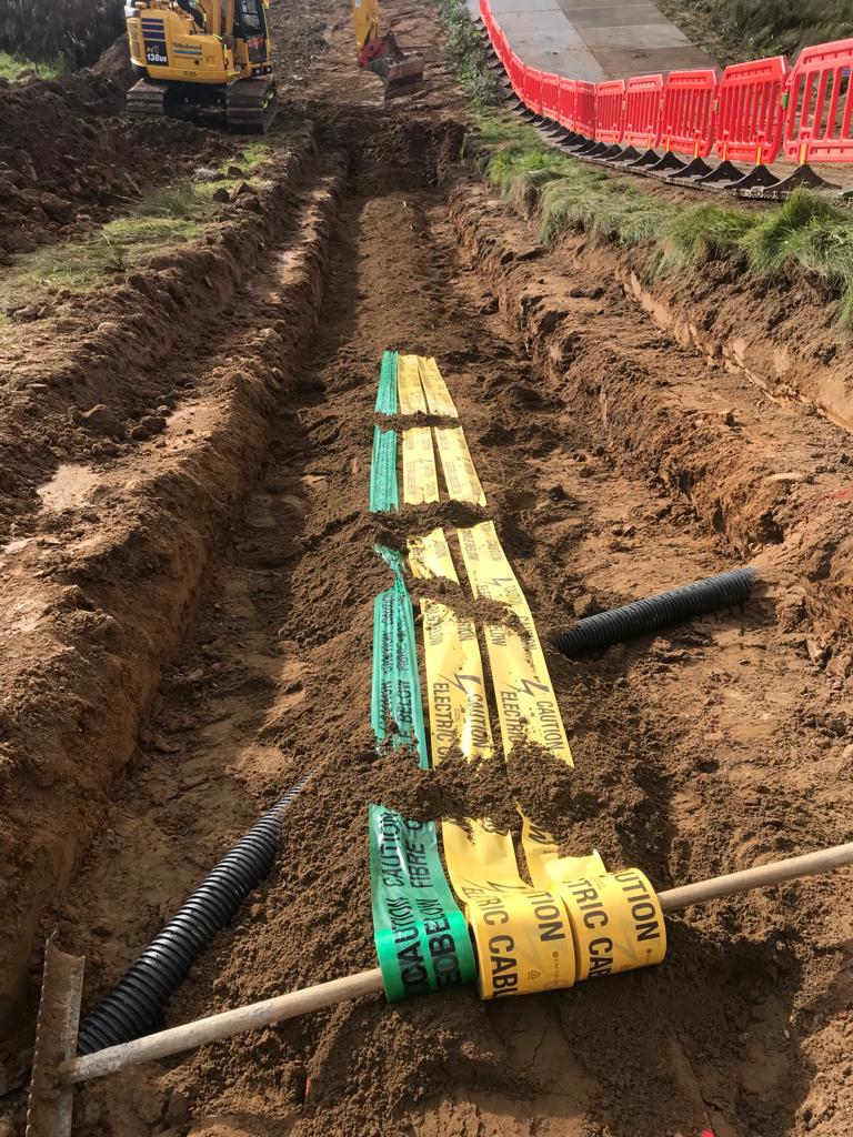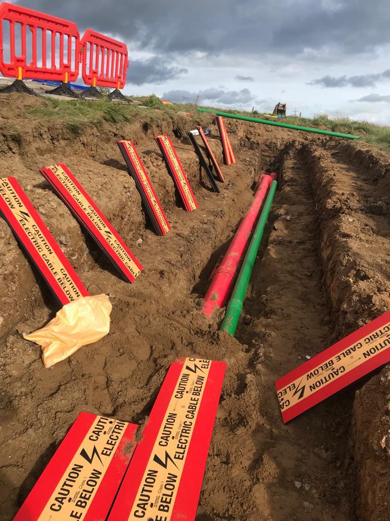 Installed 50 wind turbine bases, including bolt cages, blinding and pouring over 25,0003m of concrete and creating new access tracks across the project.